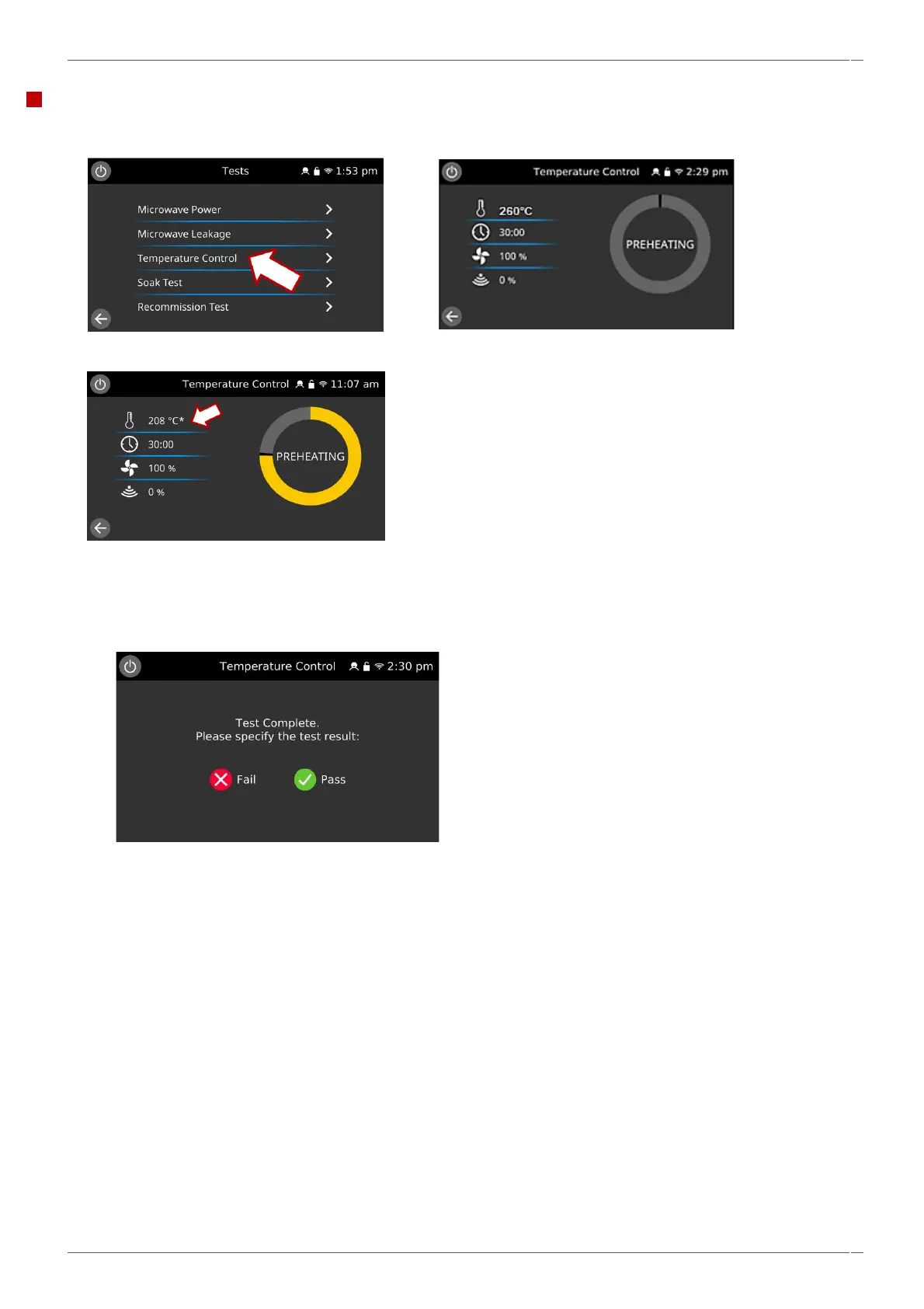 Note: Opening the door during the test will stop the test. Reselect the test to run again.