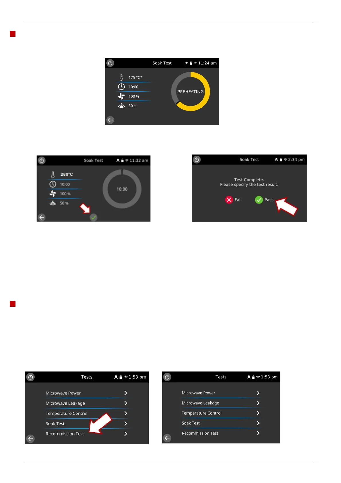 Note: Opening the door during the test will stop the test. Reselect the test to run again.