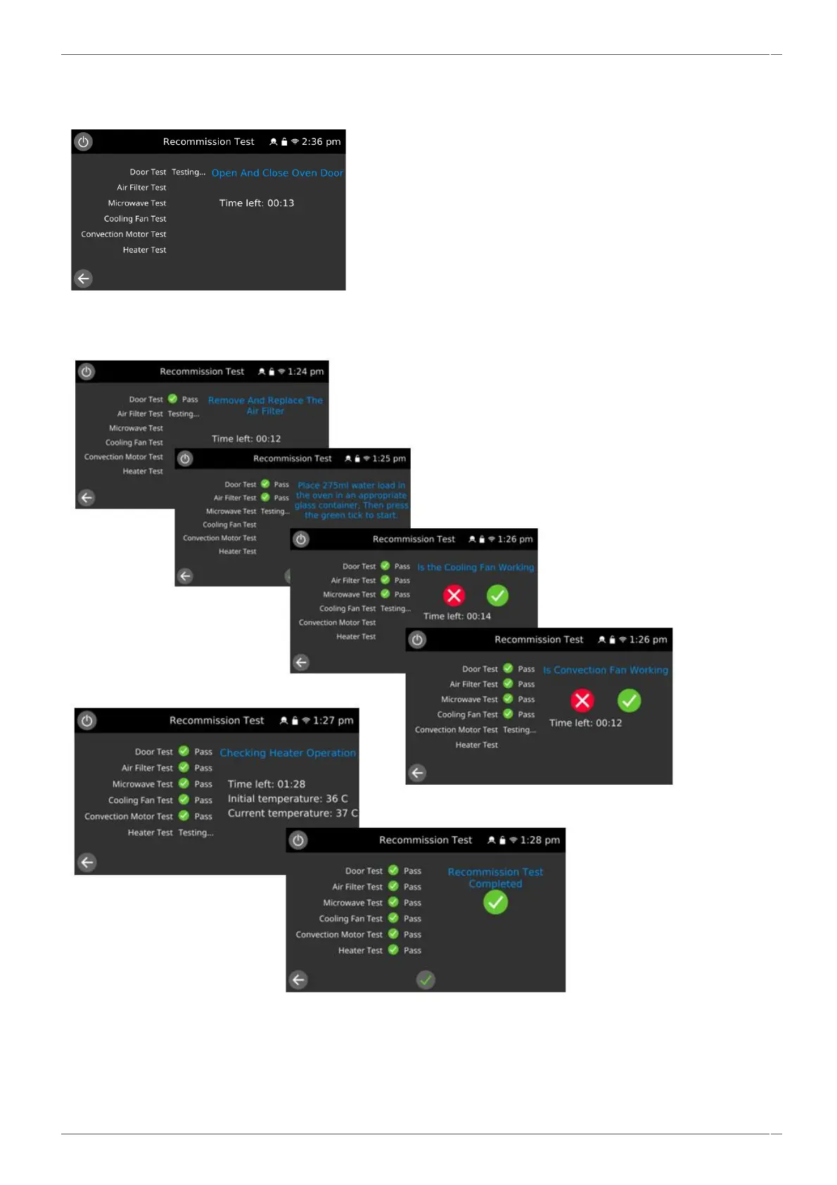 3. When all the tests have been successfully performed the display shows the recommission test has passed. Select the