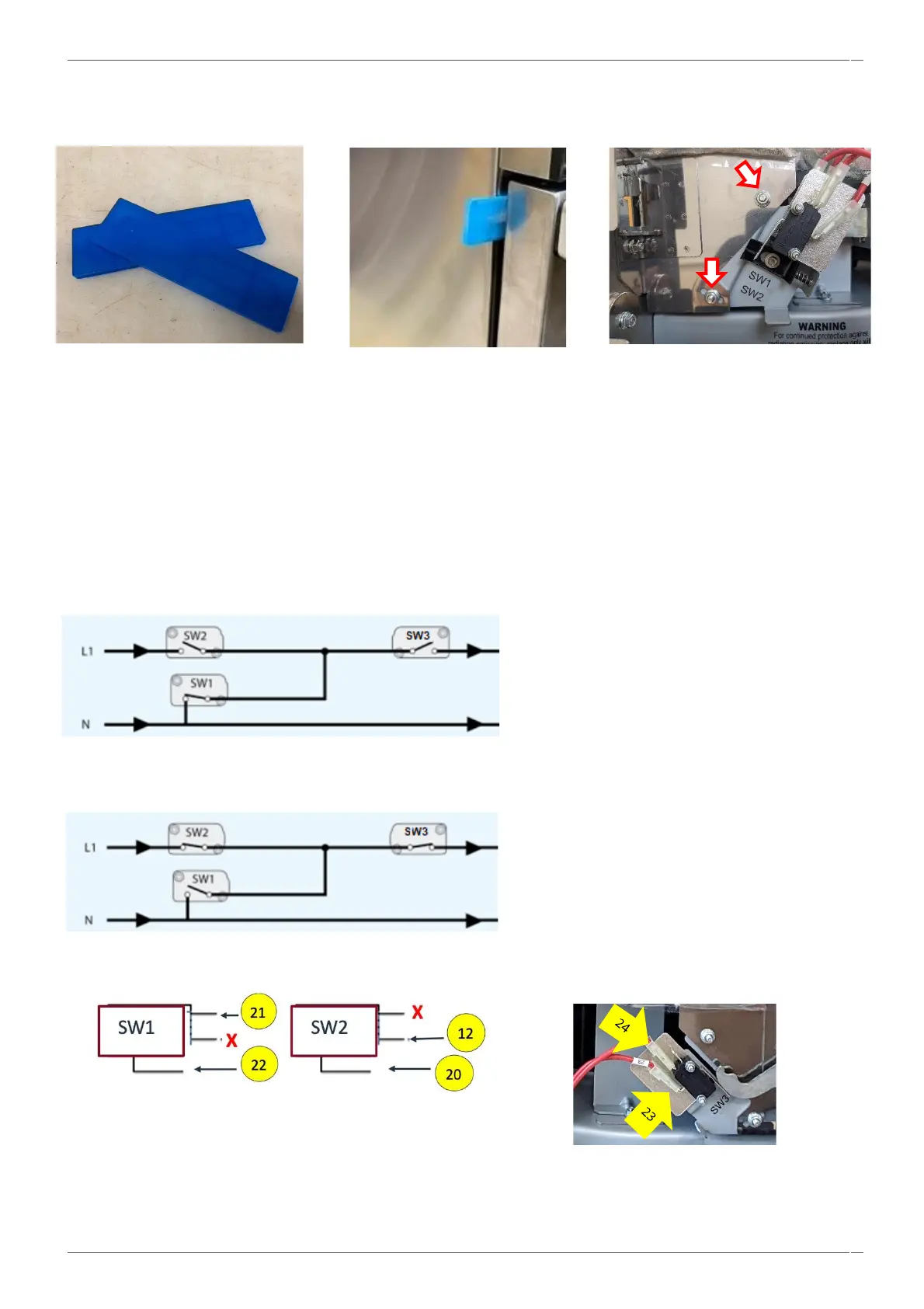 Check if the switches operate in the following sequence as microswitch SW3 must switch the load current.