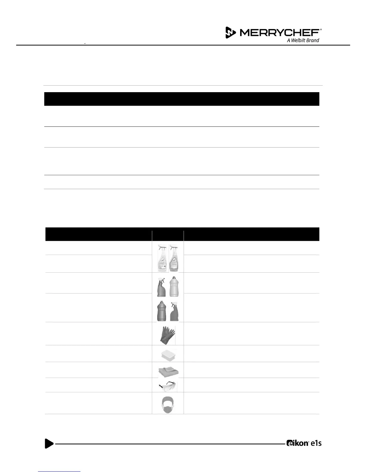 Use solely the cleaning chemicals specified in Table 2.6 to clean the microwave combination oven and its accessories.