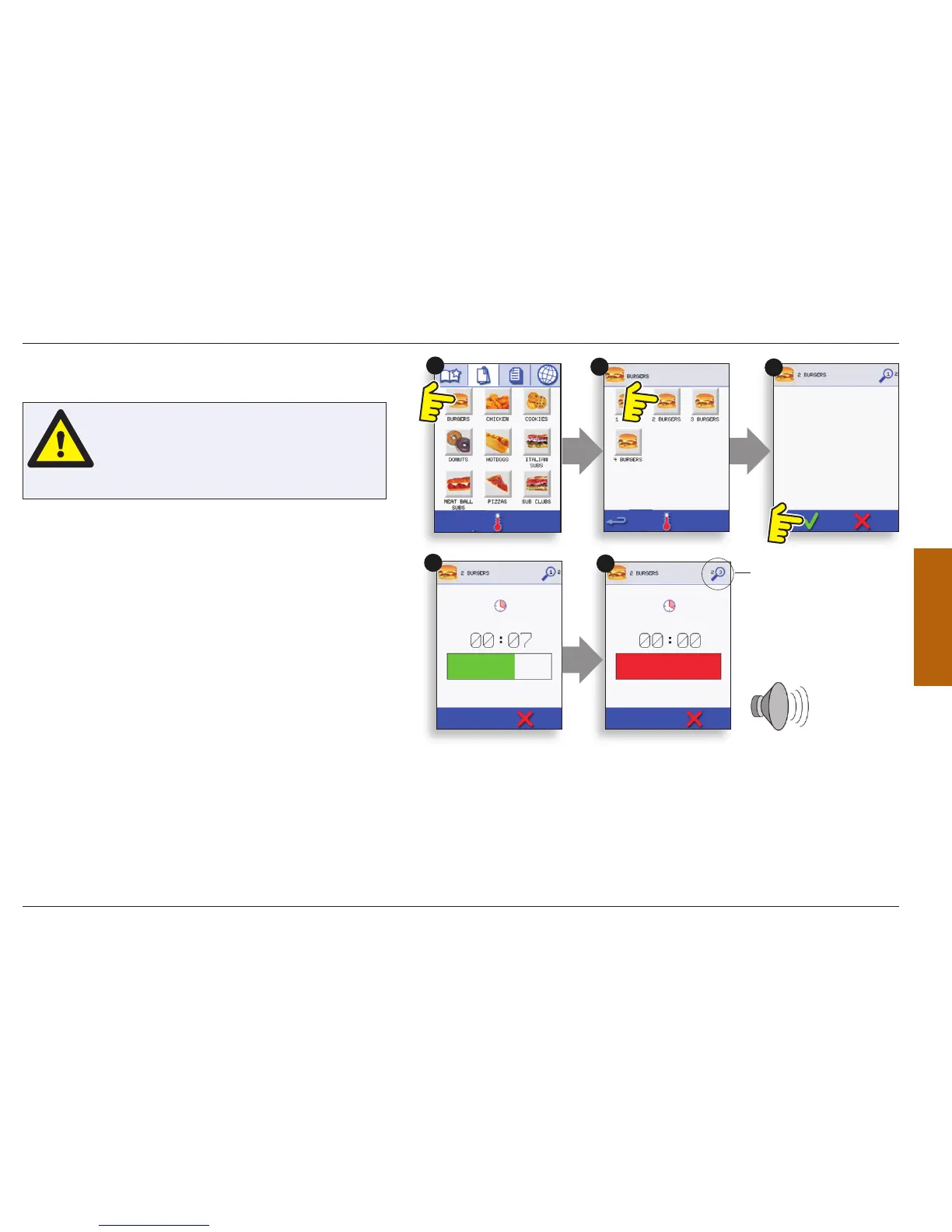 El tiempo de cocción se cuenta en forma regresiva para cada etapa