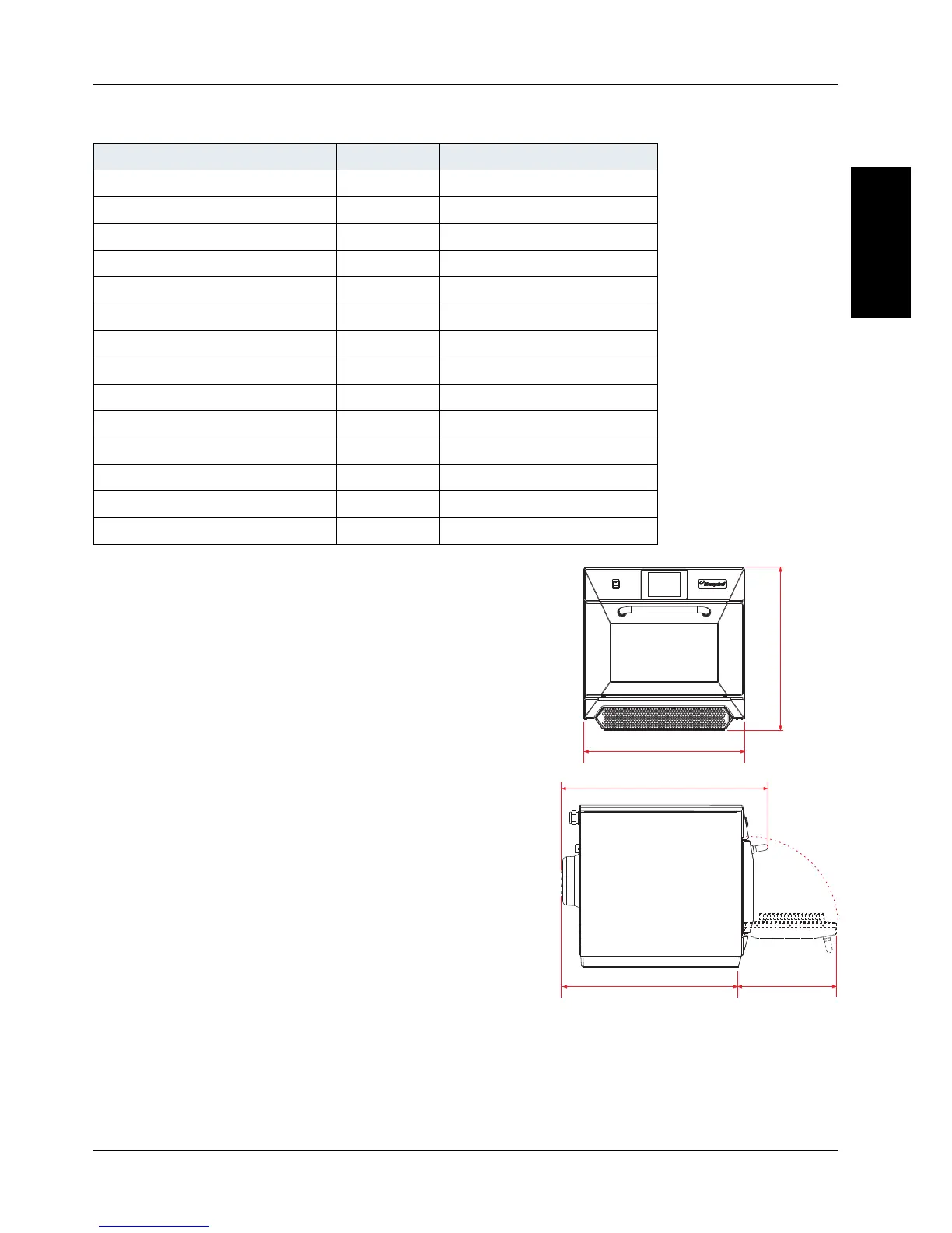 Unpackaged oven weight nett Kg (lbs)