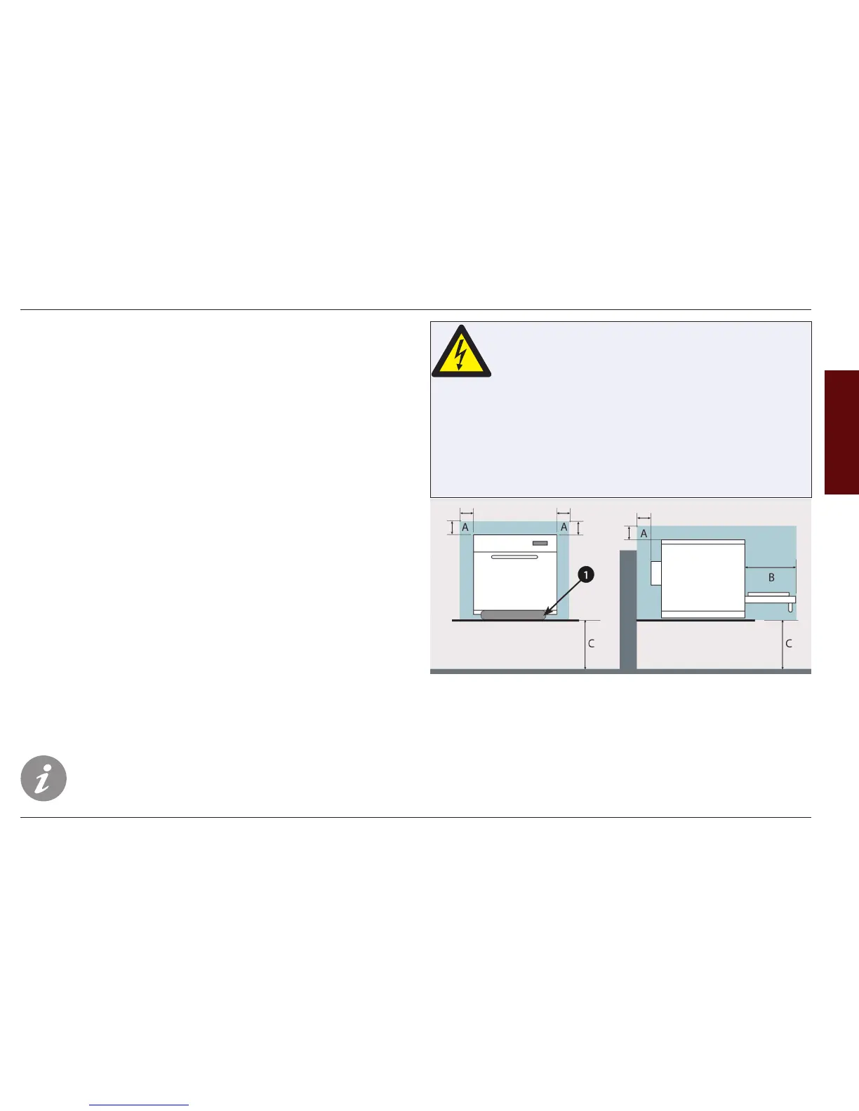 Deixe uma folga suciente (B) na frente do forno para abrir a porta