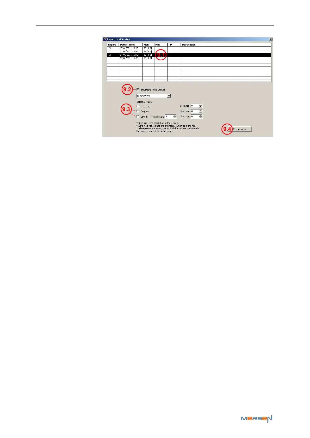 “Select X-scale” (9.3), gives you the option to export you’re curve(s) in