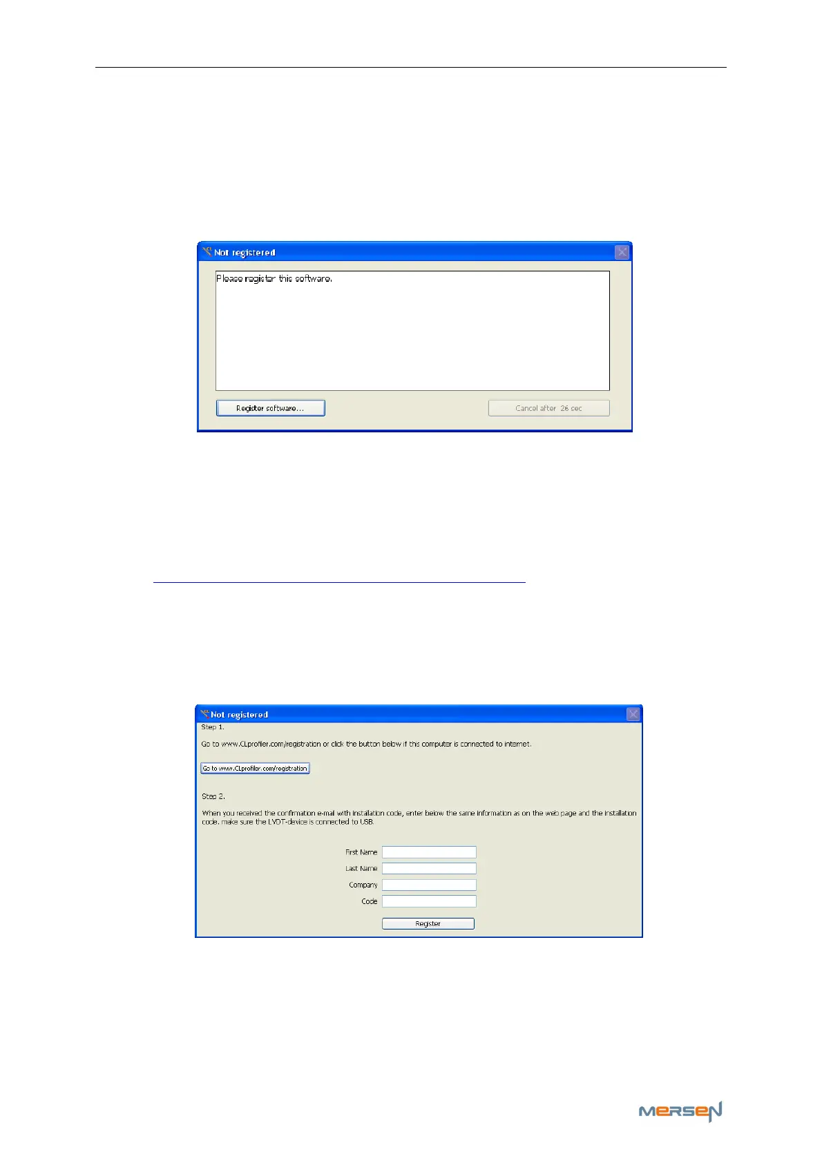 desktop. If the software is unregistered a pop-up will appear for registra-
