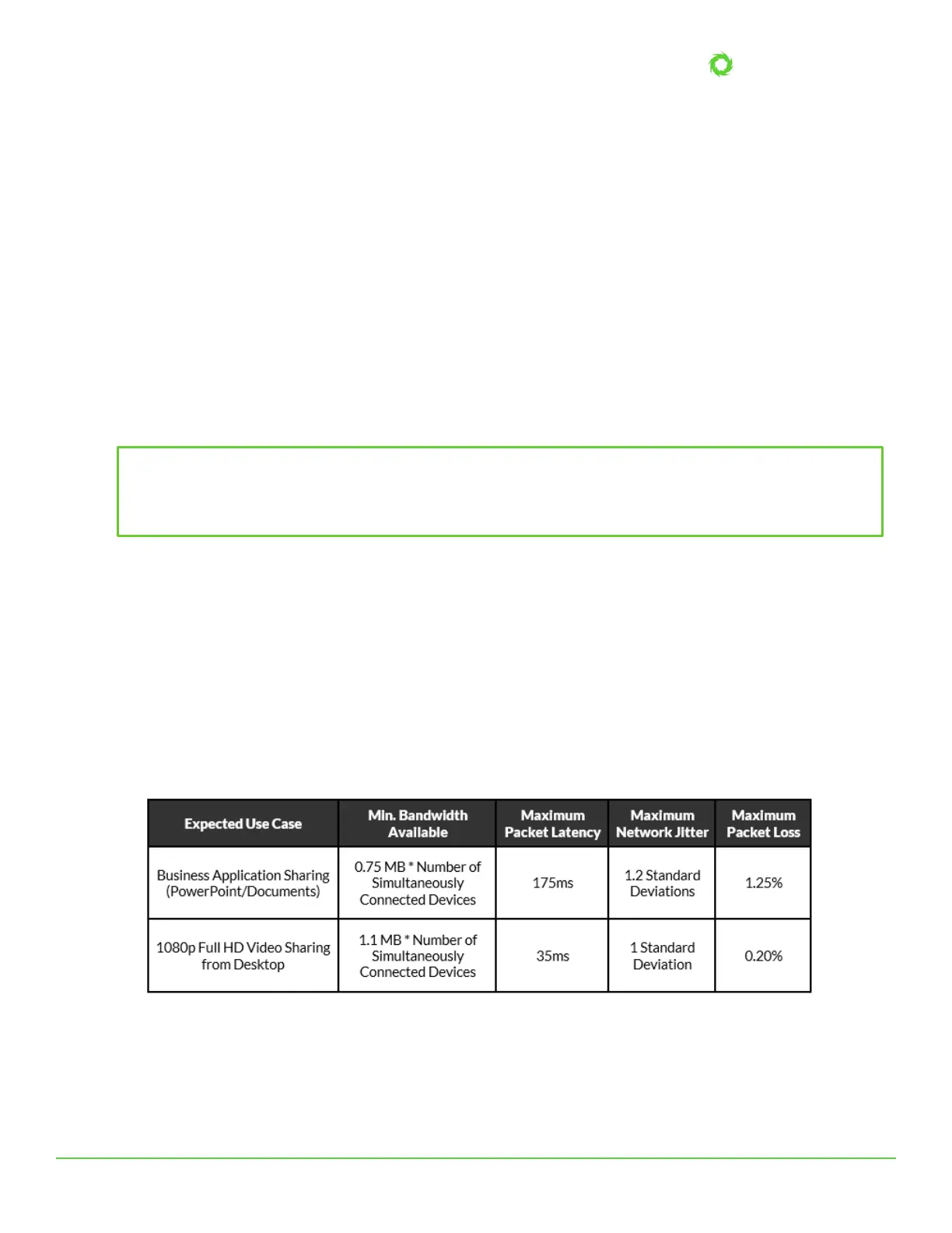 network should meet the minimum requirements outlined below. These statistics are measured between a Solstice host and