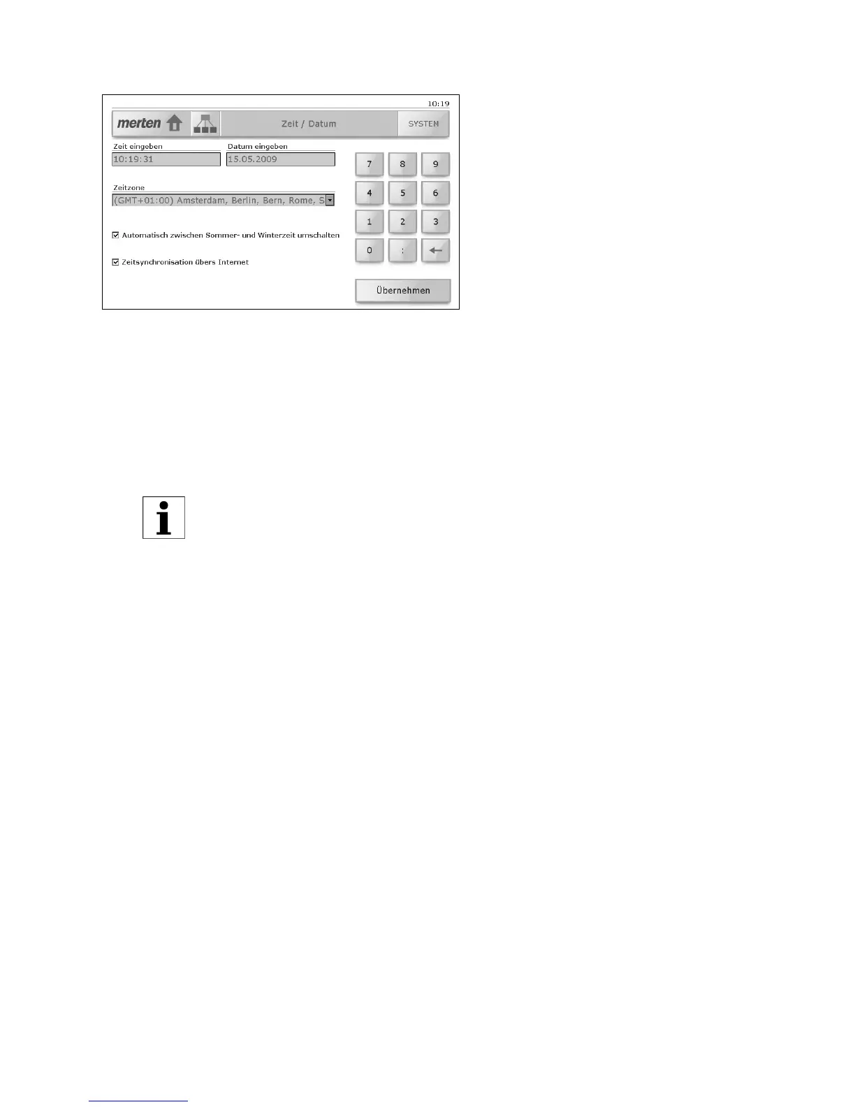 Auf der Systemseite 'Zeit / Datum' können Sie: