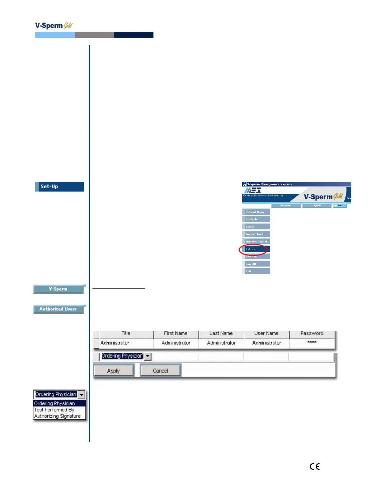 Select SET UP > V-SPERM > AUTHORIZED USERS and the screens below will be