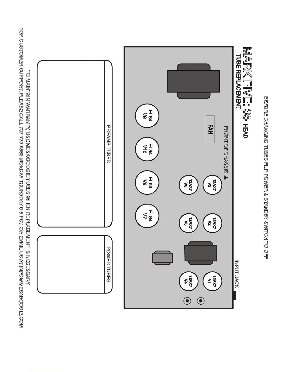 TO MAINTAIN WARRANTY, USE MESA/BOOGIE TUBES WHEN REPLACEMENT IS NECESSARY