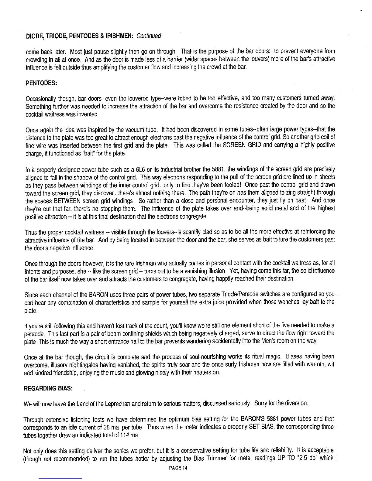 Mesa BARON - Pentode Tubes and Bias Settings; Regarding Bias Settings