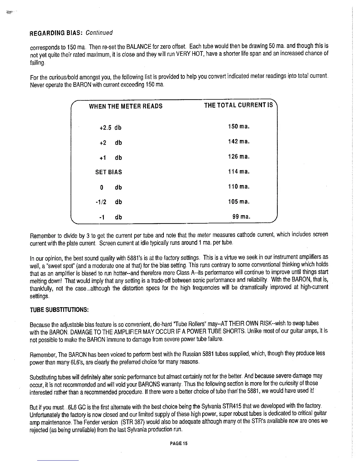 Mesa BARON - Bias Settings and Tube Substitution Advice; Tube Substitution Warnings