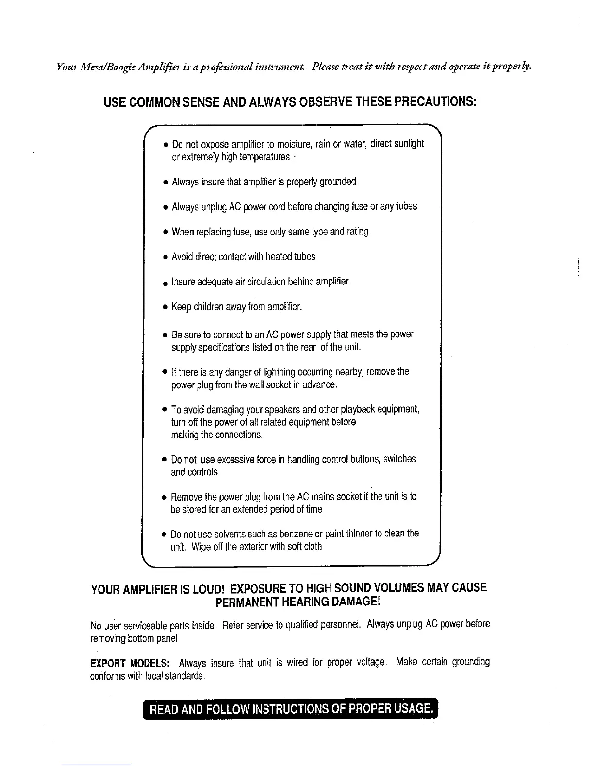 Mesa BARON - General Safety Precautions; Essential Operating Safety Rules