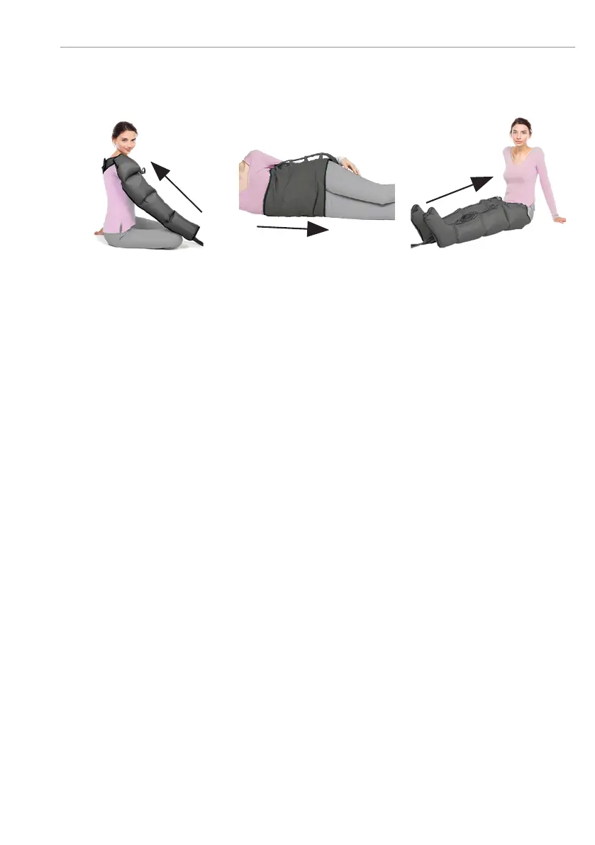 • si se utiliza la pulsera, la inación comienza con la mano para terminar el hombro;