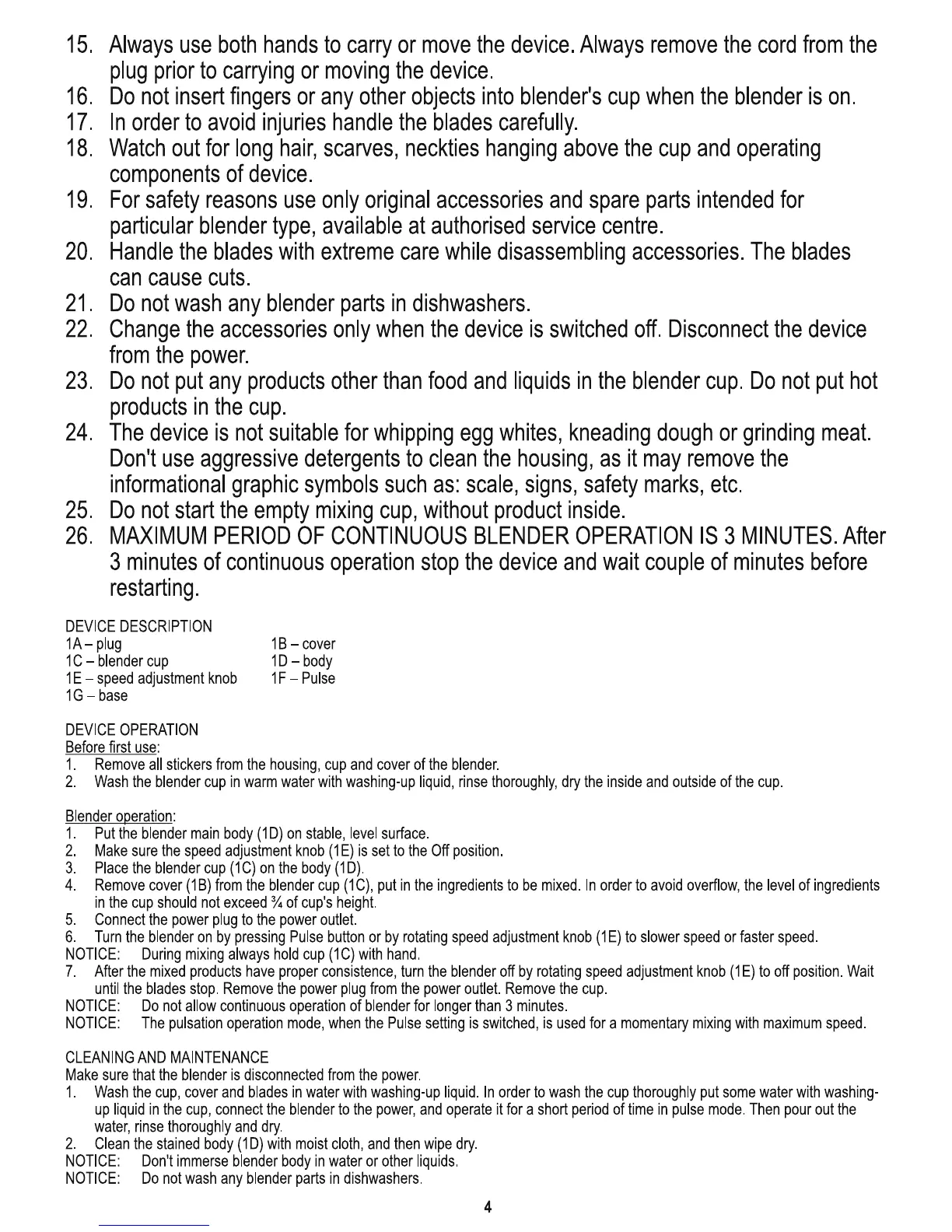 Mesko MS 4065 - Blender Component Overview; Component Identification; Blender Operation Guide; Preparation Before First Use