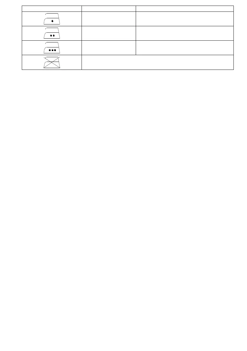 podešavajući peglu u uspravnom položaju ili podešavajuci regulator na poziciju „0“. Kao što je naznačeno na ručici termostata i u tabeli