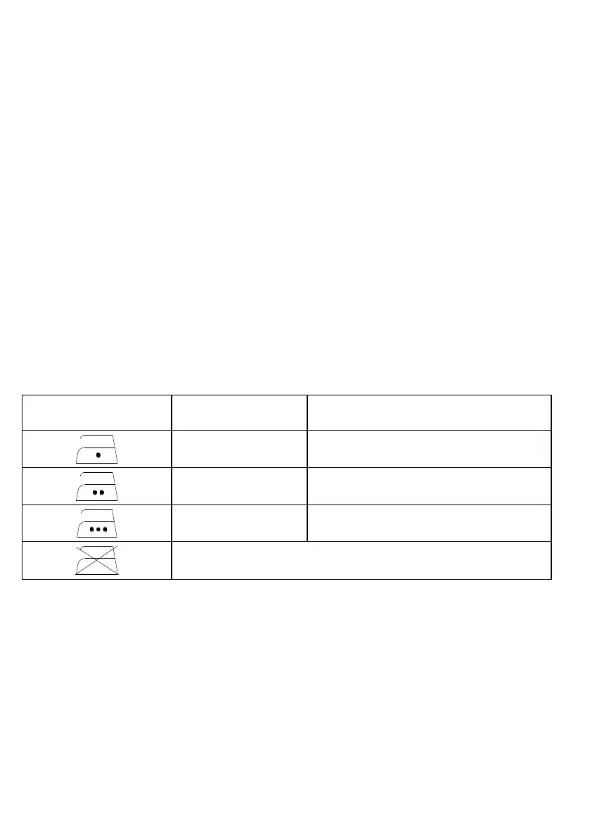Advarsel: Når du stryger, tændes termostatreguleringslyset fra tid til anden, det betyder, at den valgte temperatur holdes konstant. Hvis du