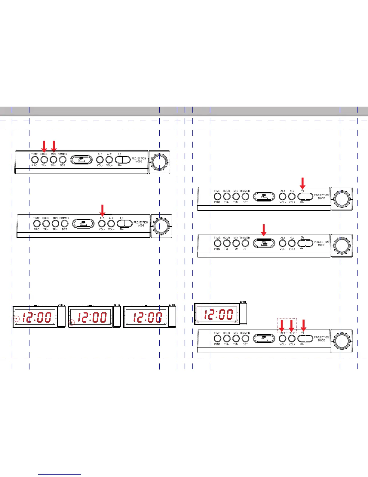 5. Now press AL1/VOL- button (6) repeatedly to choose the alarm