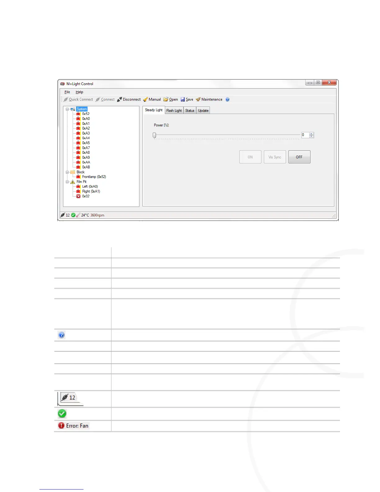 Displays the status of the M=Light LED highlighted in the M=Light Explorer.