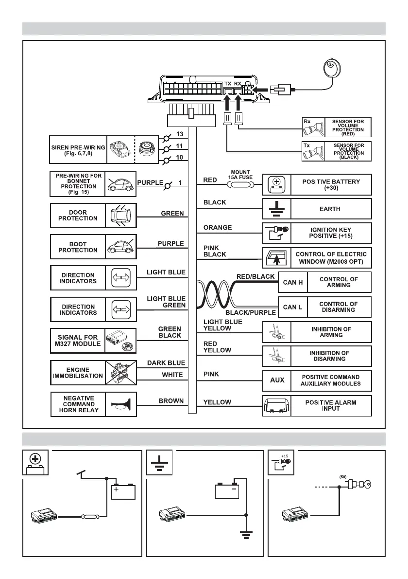 Meta System EasyCan EVO Digital - General Diagram; Siren Pre-wiring; Pre-wiring for Bonnet Protection; Door Protection