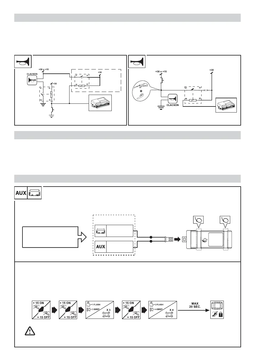 To disable the auxiliary modules, proceed as illustrated below; activate the +15 car panel 3 times and lock