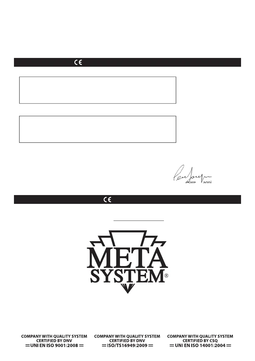 Hereby, Meta System S.p.A., declares that this product is in compliance with the essential requirements and other