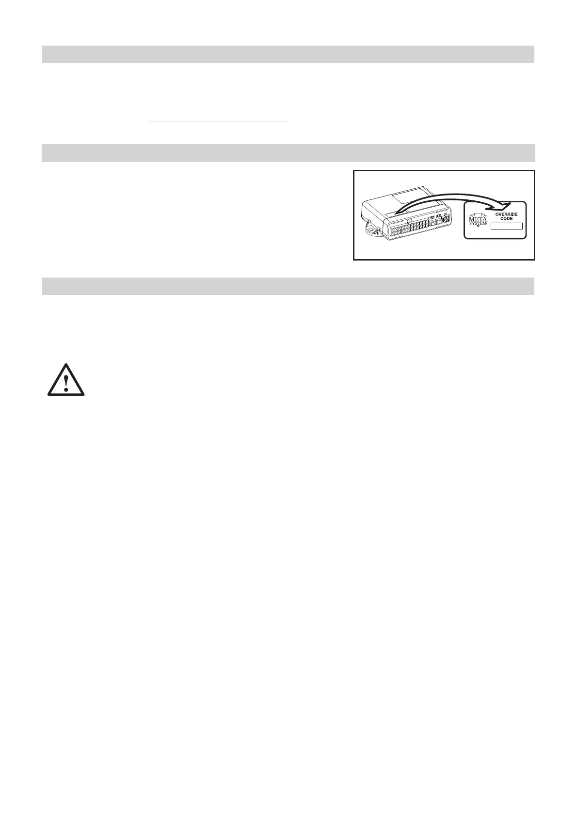 The control unit is supplied with a customized OVERRIDE CODE and