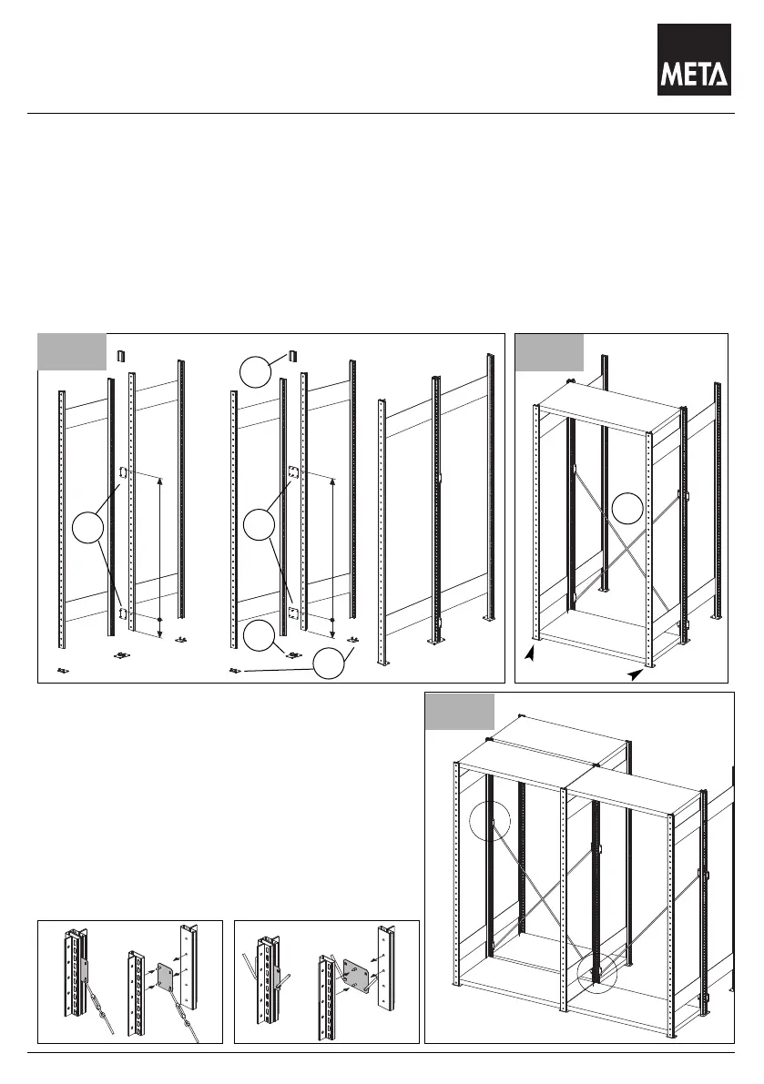 3. Die Doppel-Rahmen mit Einfachanschlussblech werden am Ende / Anfang der Regalzeile eingesetzt.