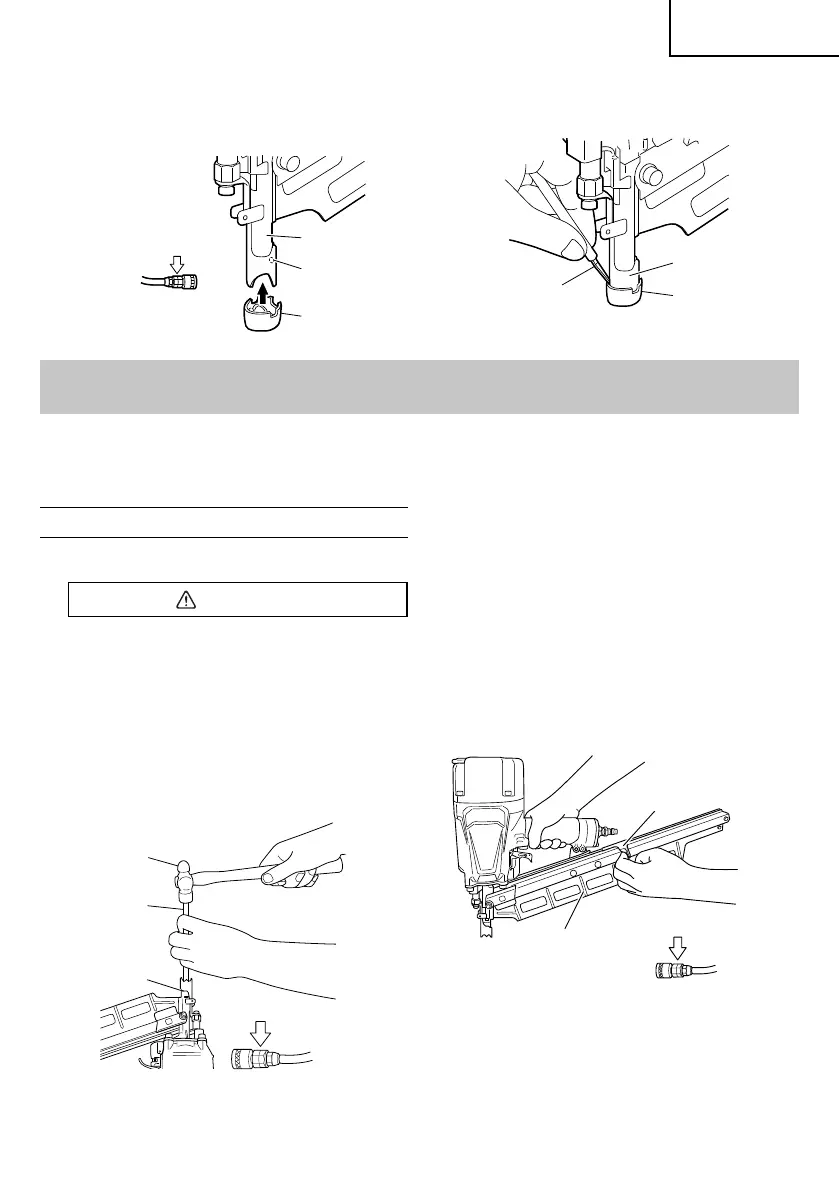 Remove a jammed nail in the following order:
