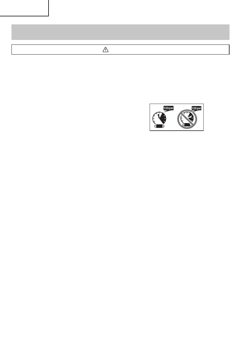 DO NOT EXCEED 120 psi (8.3 bar 8.5 kgf/cm