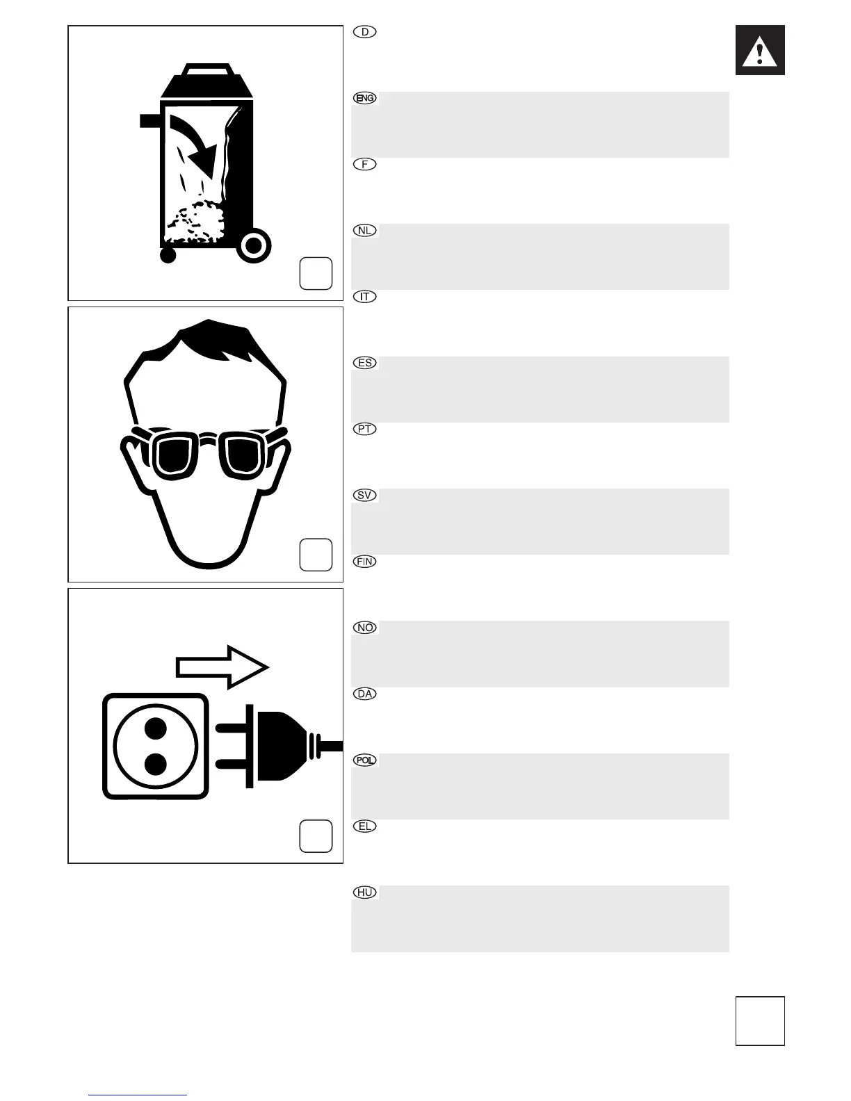 skyddsglasögon! C: Dra stickproppen för