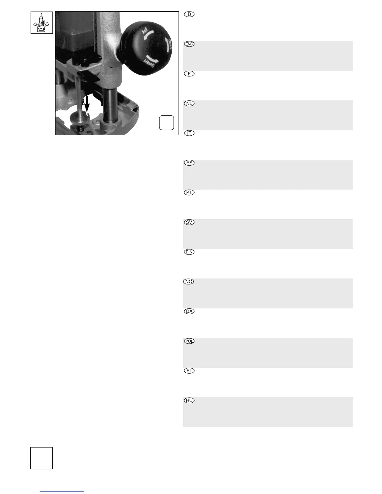 og motordelen føres nedad, indtil fræseren hviler på