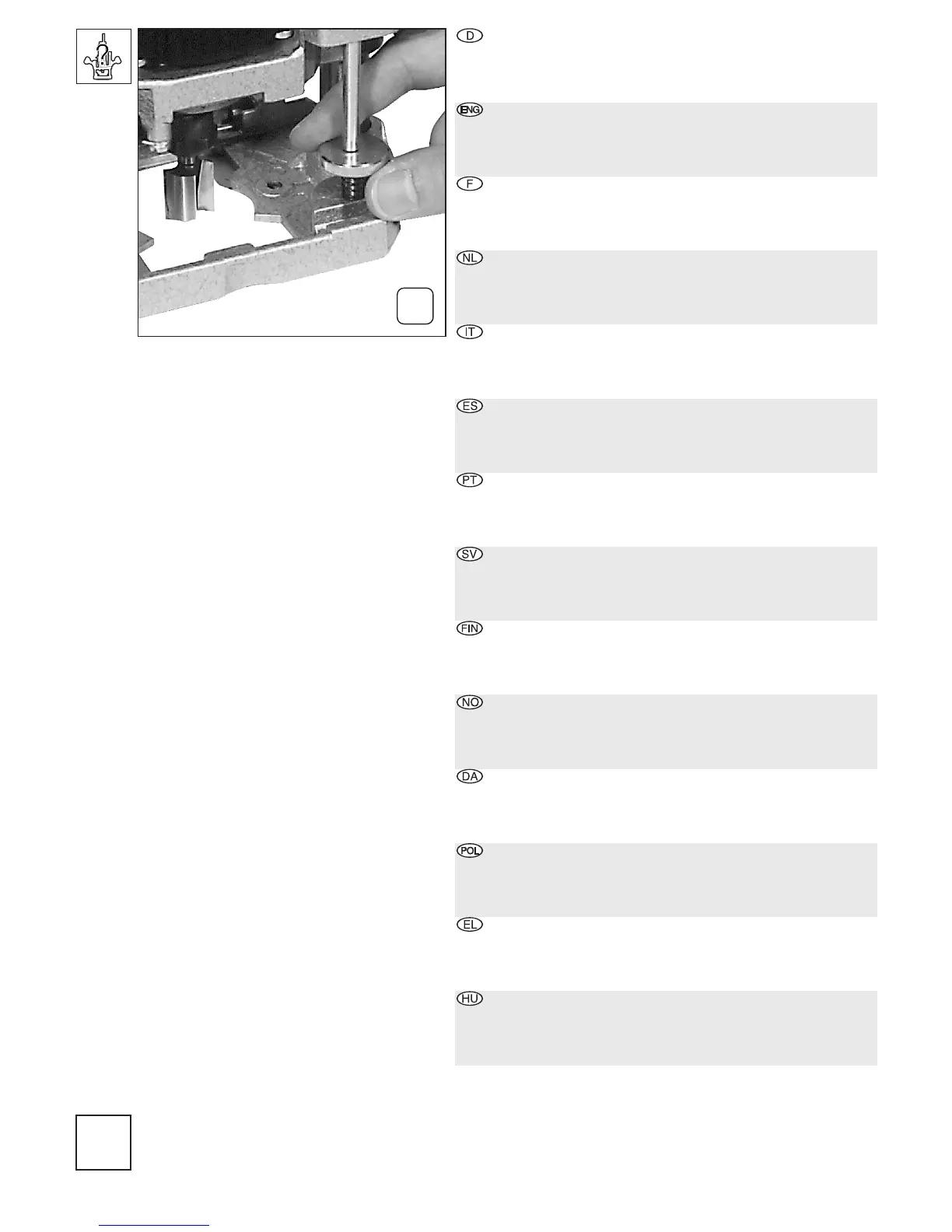 E: Fijninstelling met behulp van de kartelschroef. Eén