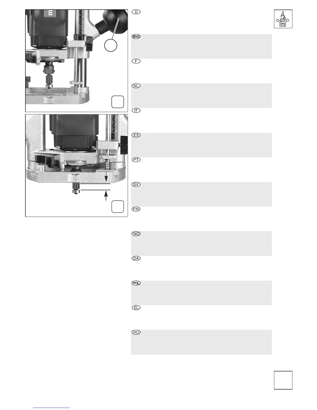 B: Senk maskinens motordel til nødvendig fresedybde (a).
