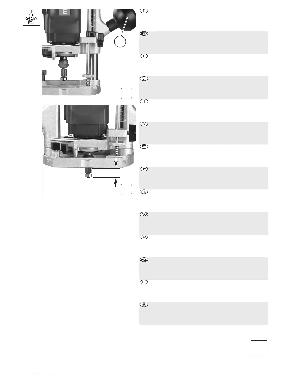 A+B: Løsne innstillingsknappen (1) og senk motordelen