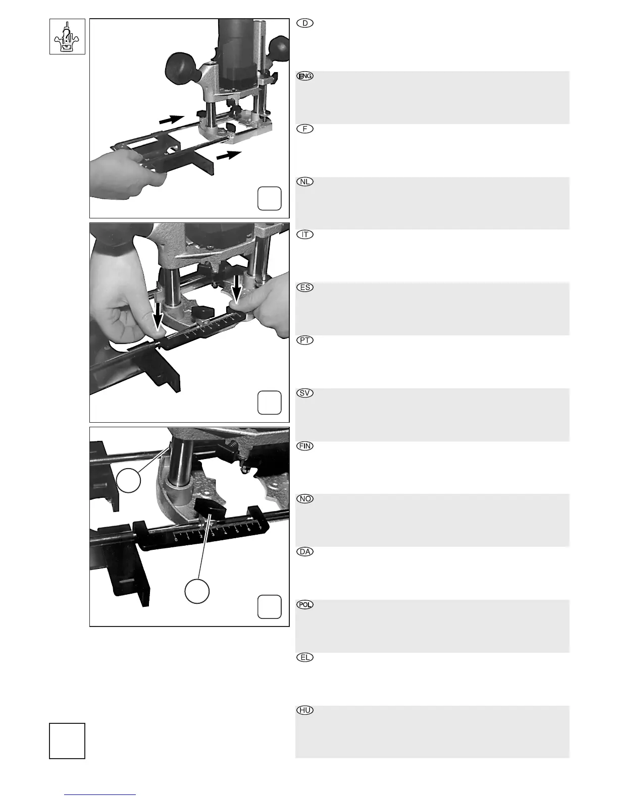 A: Insert parallel guide (included in delivery) in the