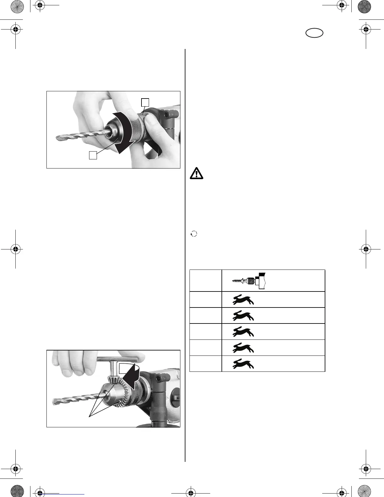 Insert the tool and tighten evenly with chuck key in