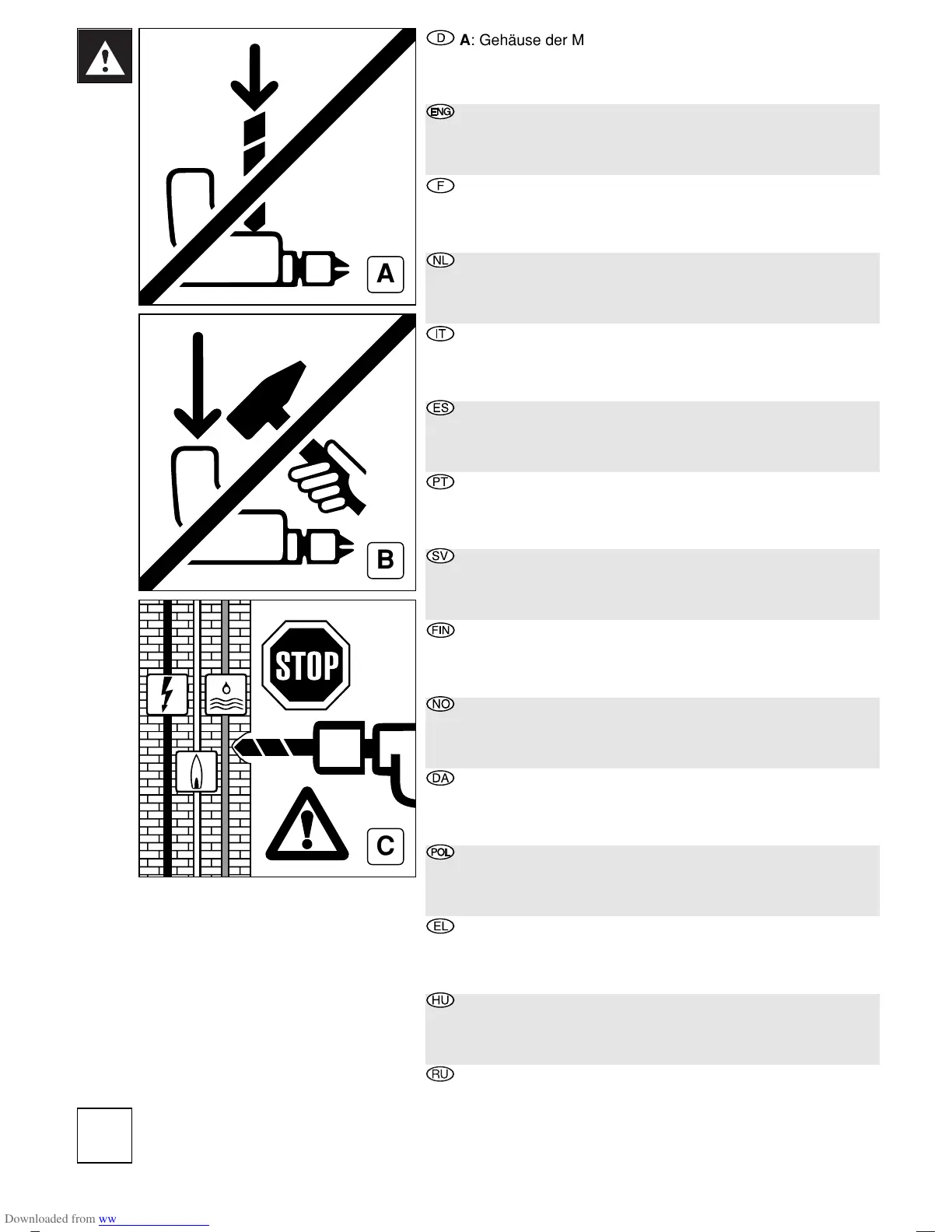 C: Ta hensyn til gass-, strøm- og vannledninger !