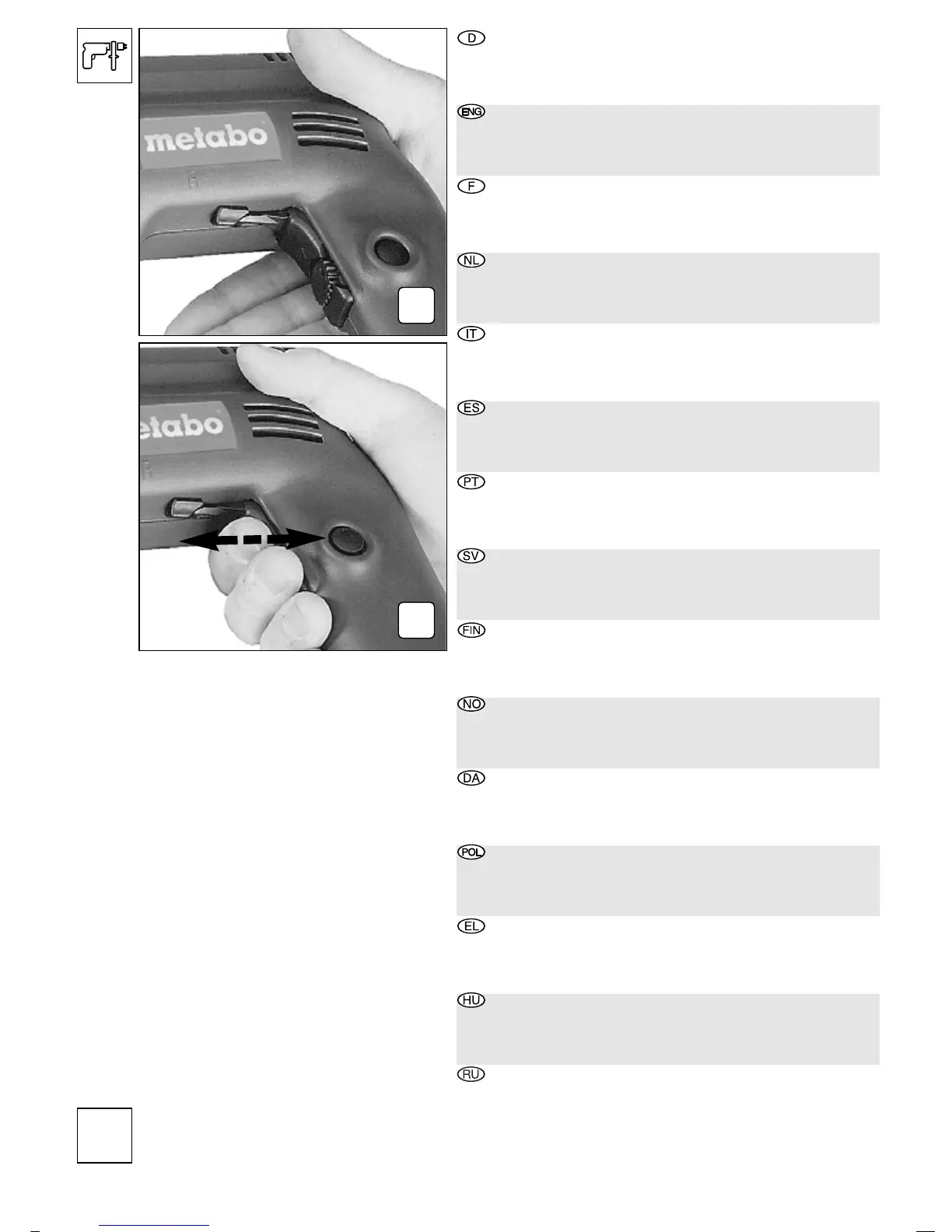 N: W celu zwolnienia rygla nacisnąć i zwolnić przycisk włącznika