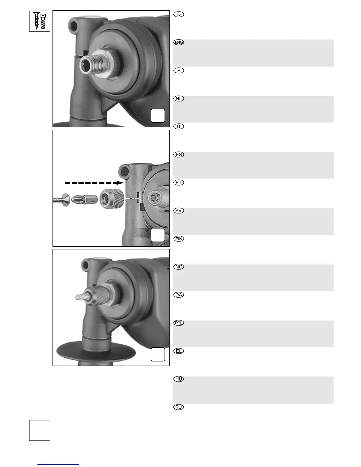 Zastosowanie jako wkrętarka (A–C)