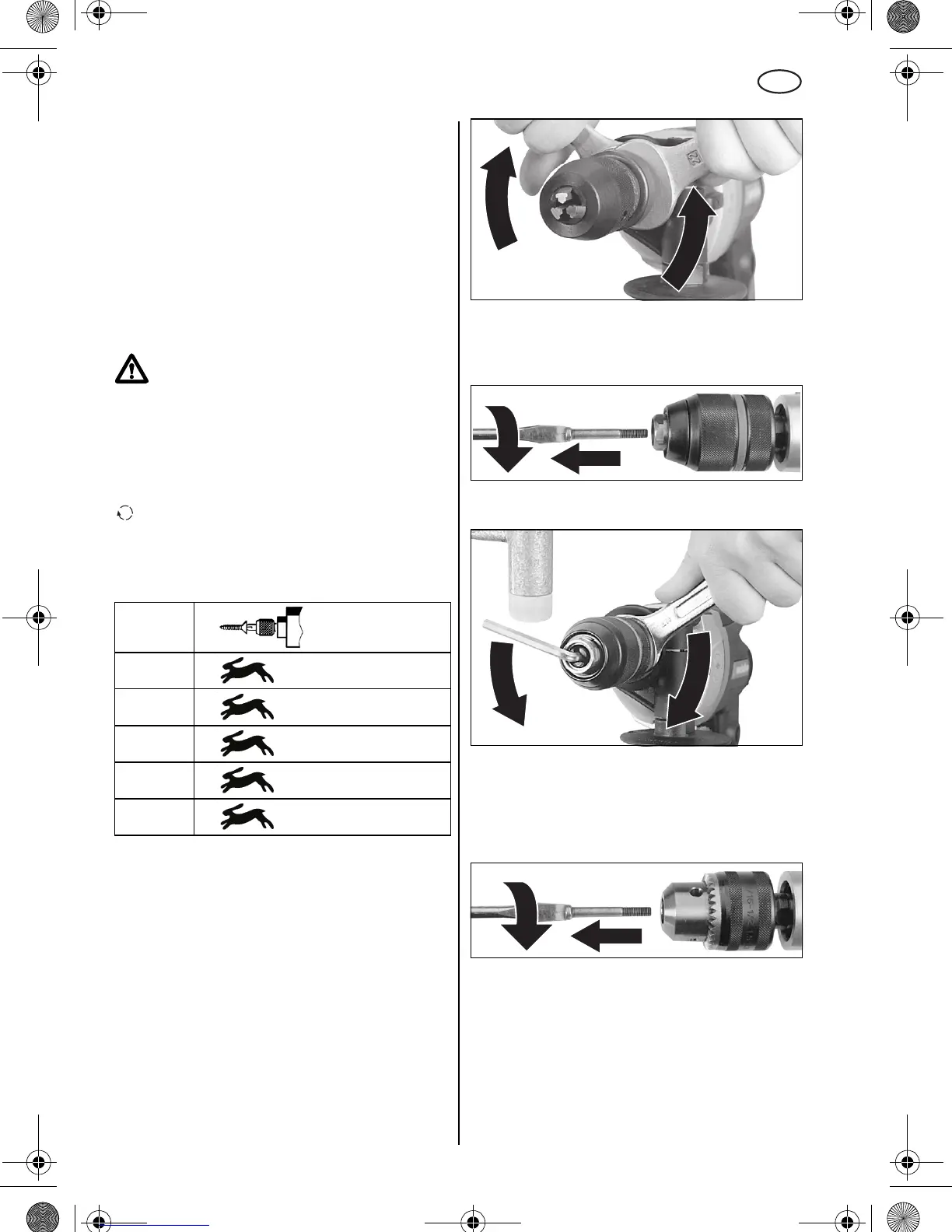 + Desligar função impulso (para perfurar)