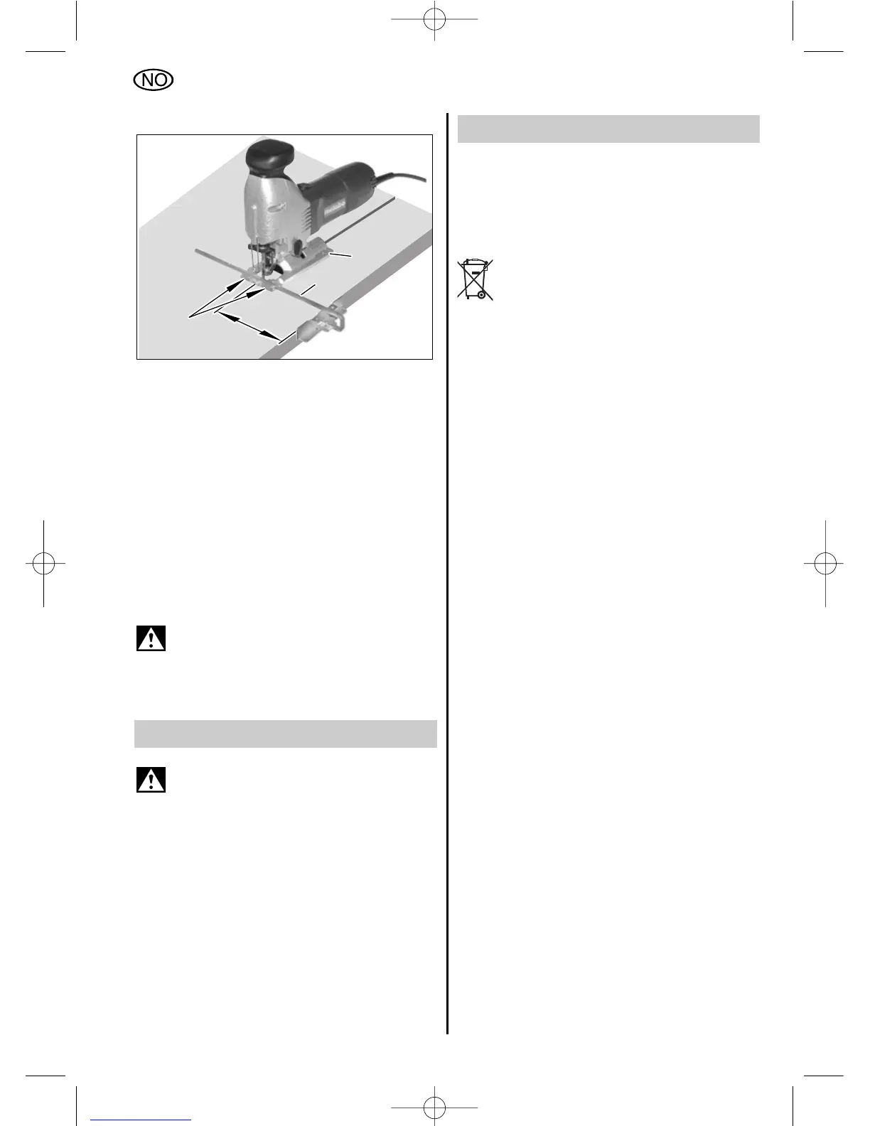 svinges til venstre Stikksagen må ikke