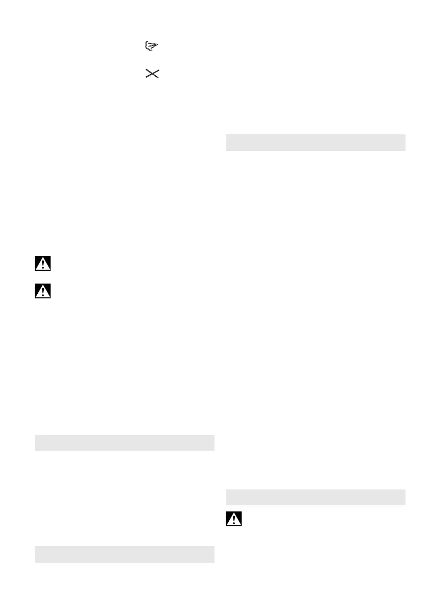 Starta: Tryck på brytaren (13). Tippa ned den tills