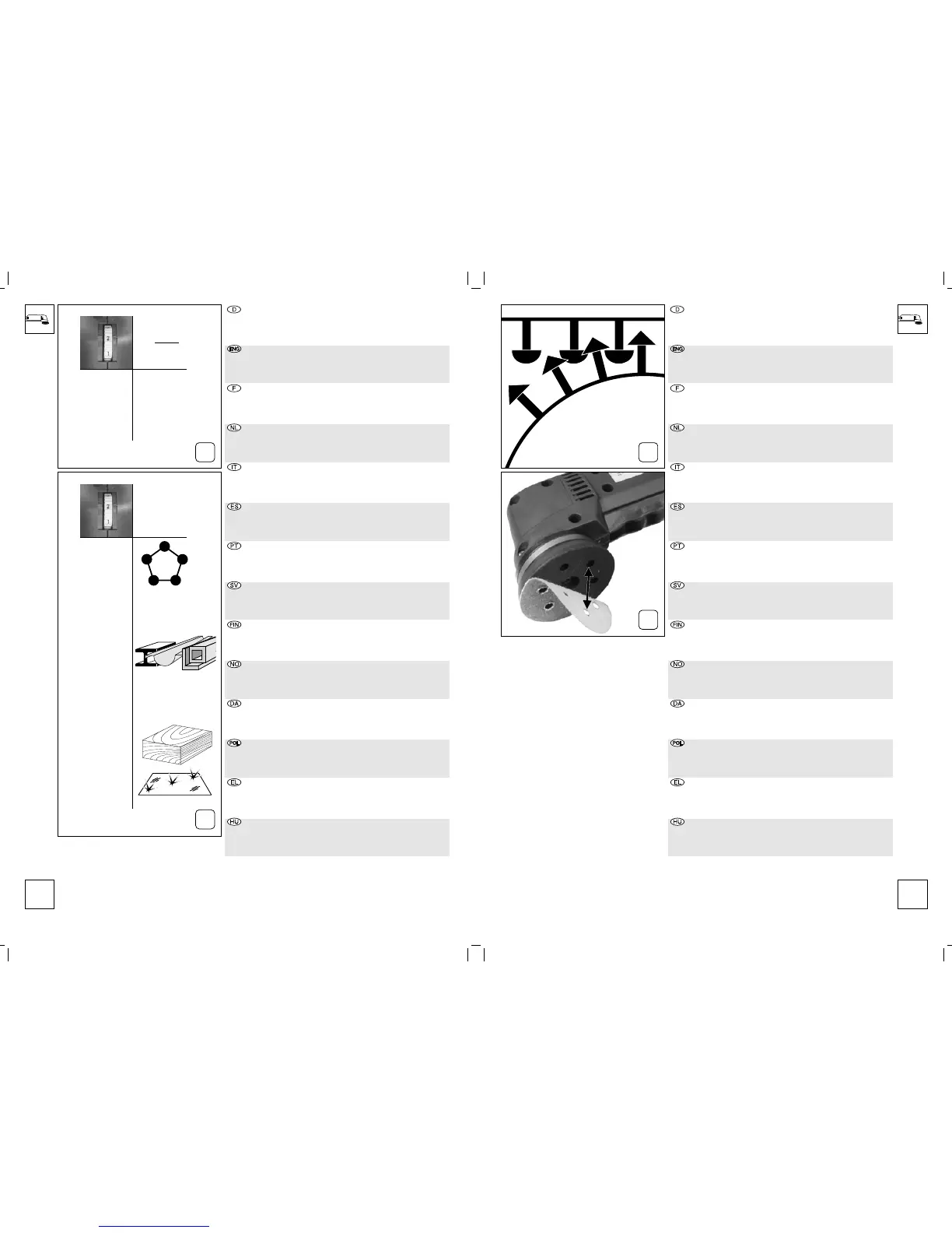 B: Slipebladet trykkes enkelt på, slik at hullene i