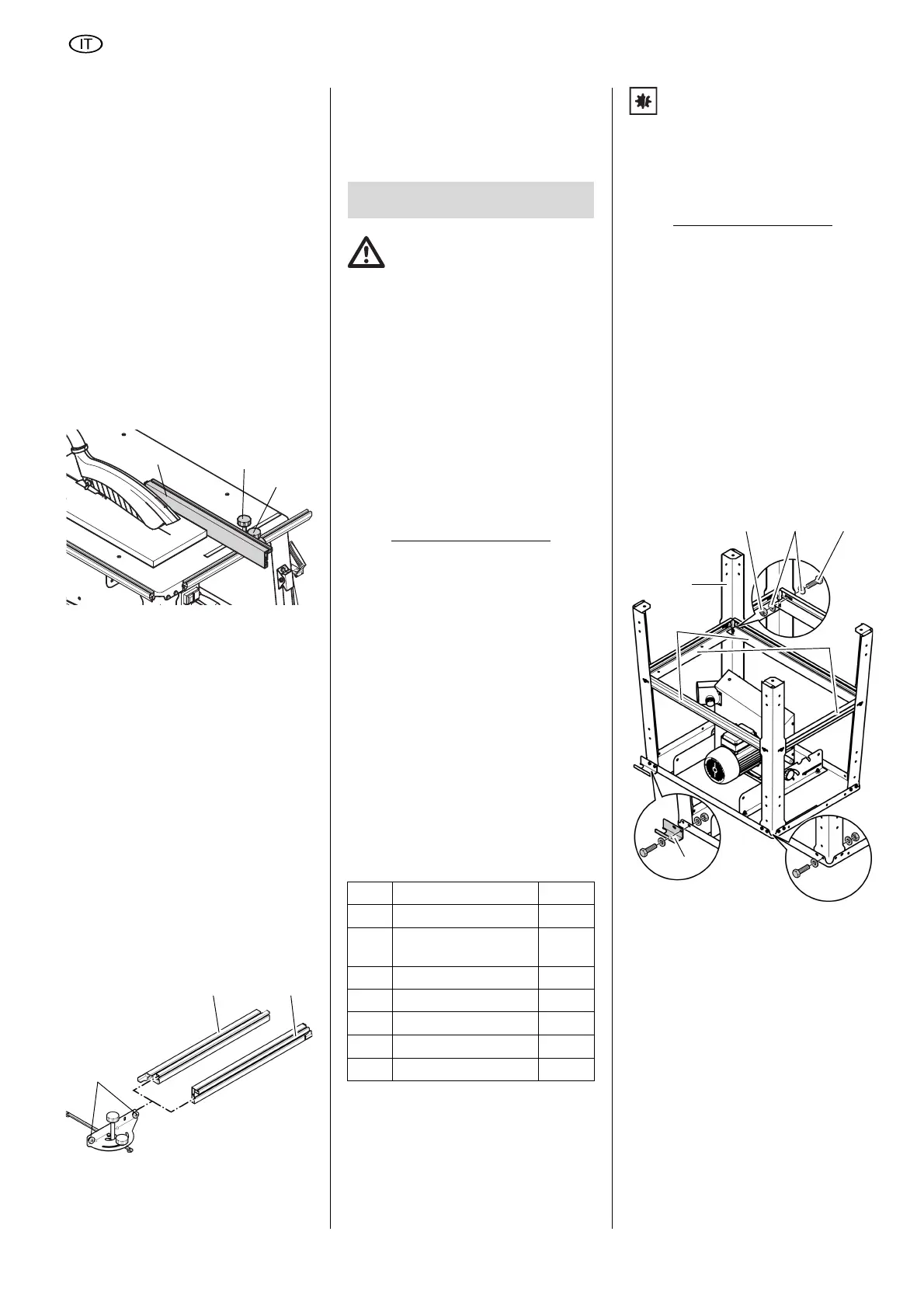 ni per il montaggio, la sega sarà confor-