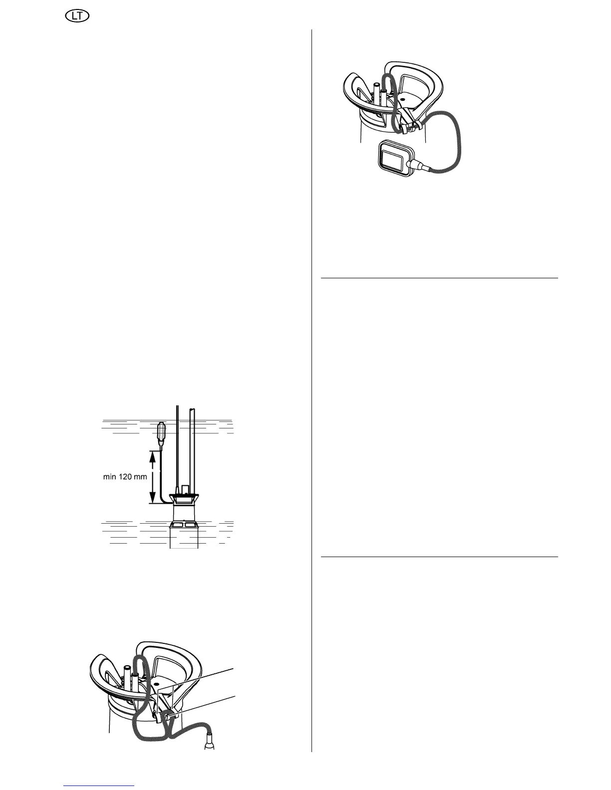 2. Siurblį nuleiskite ant skysčio rezervuaro