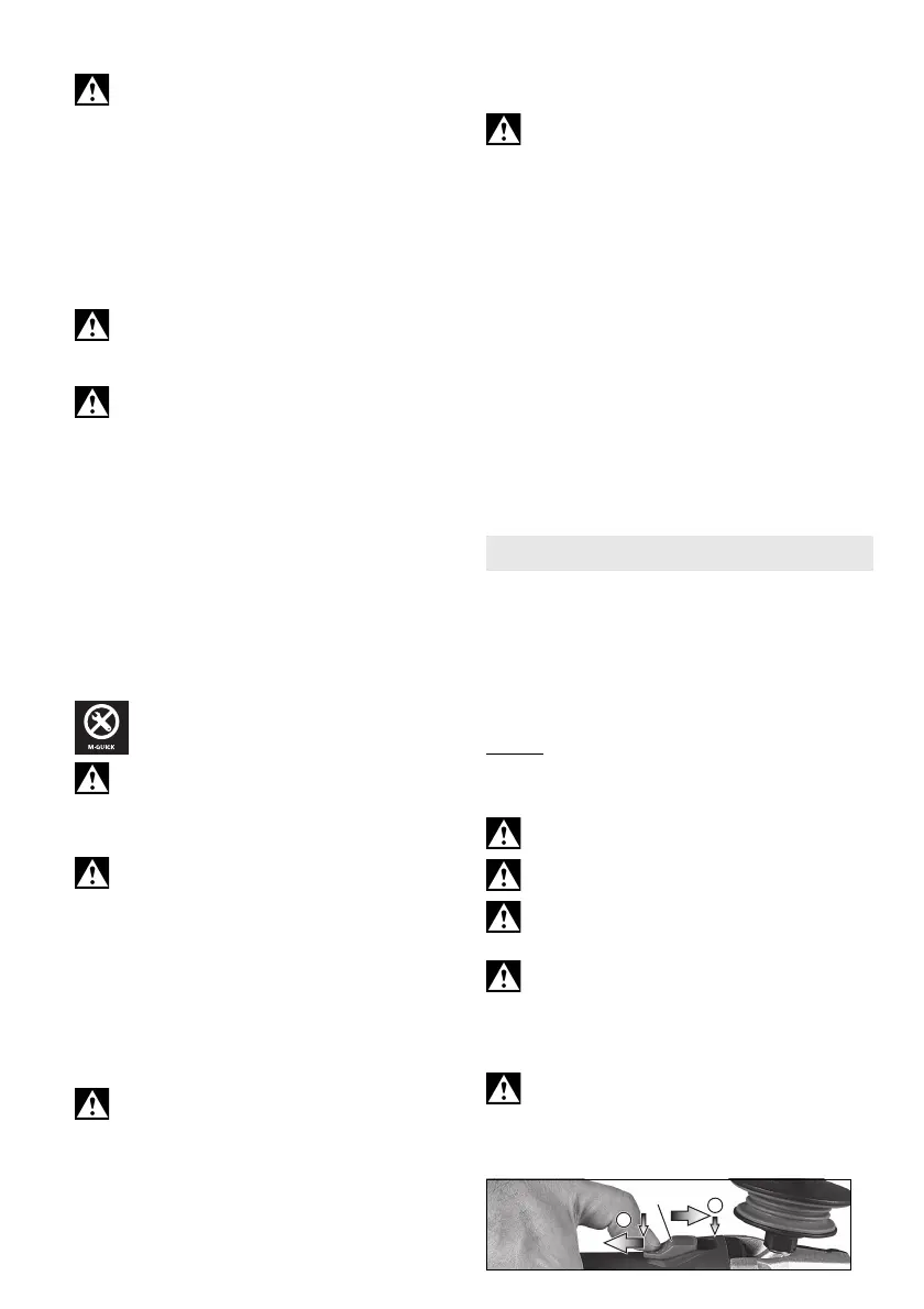 - Paina karan lukitusnuppi (4) sisään ja käännä