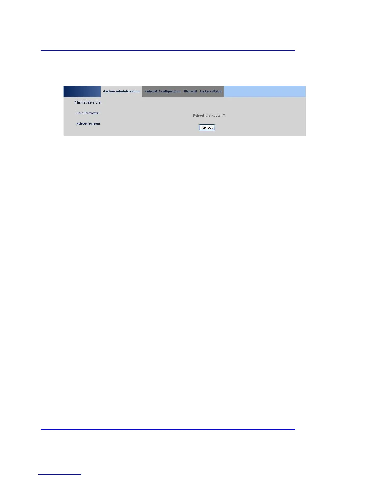 Reboots the router. You will then need to connect to the device again. It is advisable to reboot the