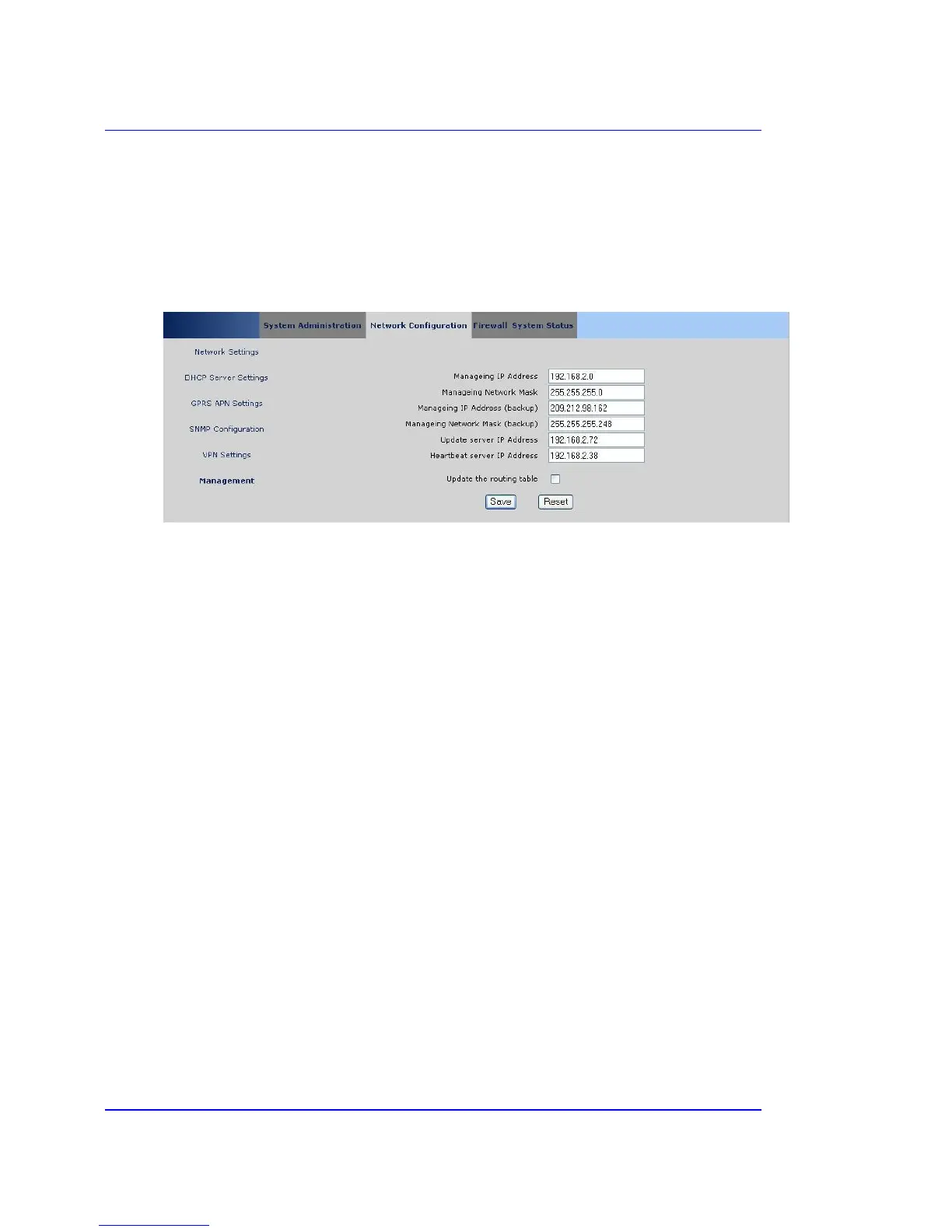 Stores the settings on the device and updates the routing table if selected. Please restart the