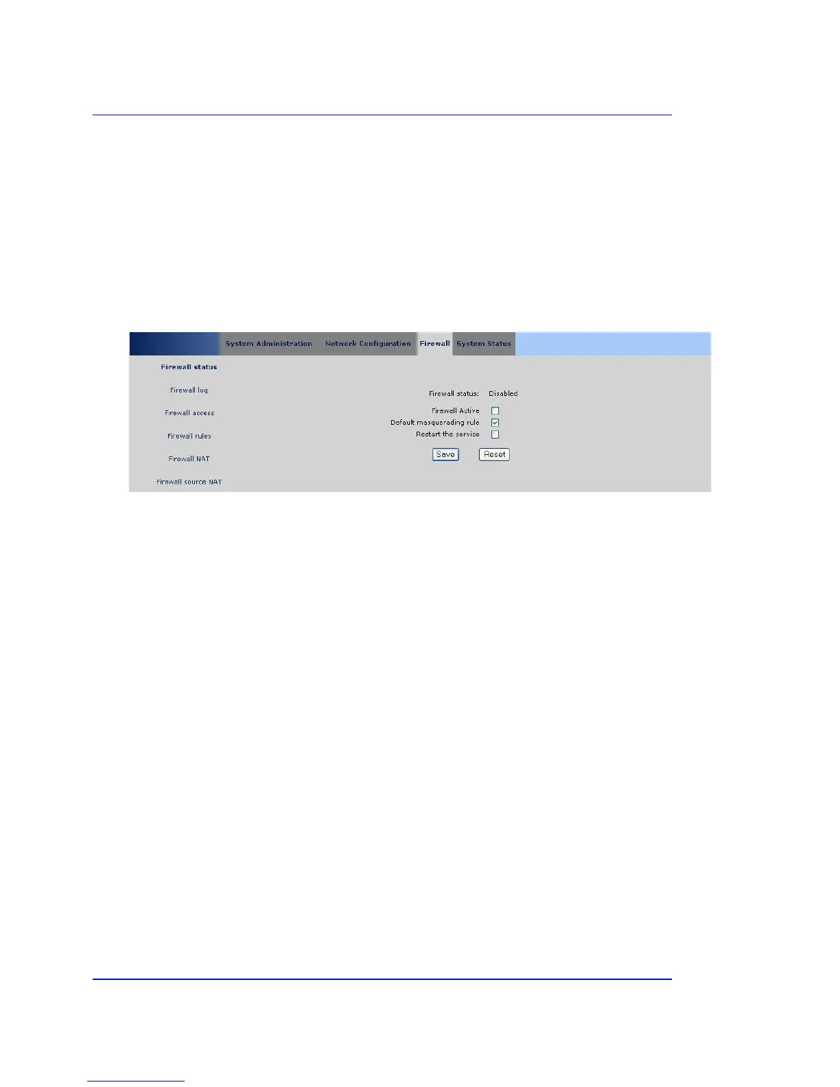This panel contains all the firewall related settings. The firewall is based on Linux’s netfilter and